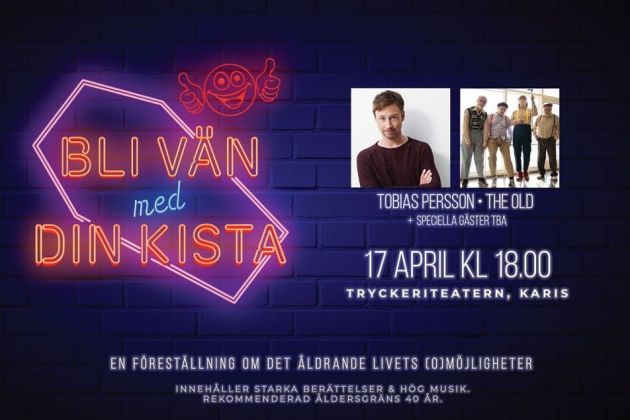 BLI VÄN MED DIN KISTA återkommer till Tryckeriteatern efter höstens utsålda succé. Den här gången tar Tobias & The Old med sig nya gäster på upptäcktsfärd i åldrandets djungel.